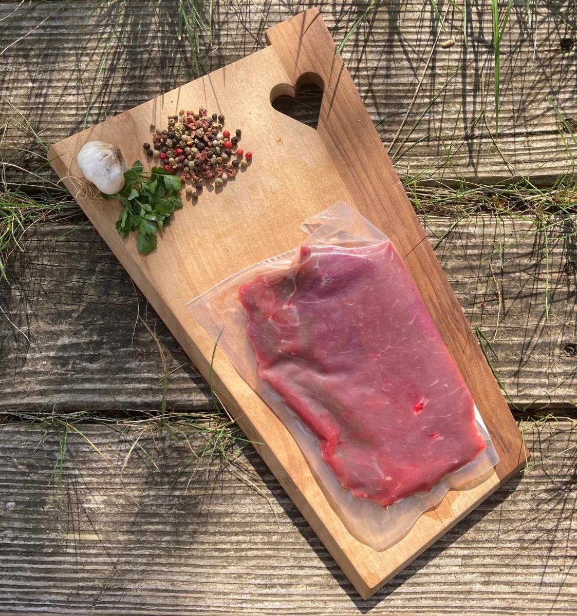 Bavette de boeuf, aloyau ou flanchet, race limousine, agriculture biologique, mise sous-vide.