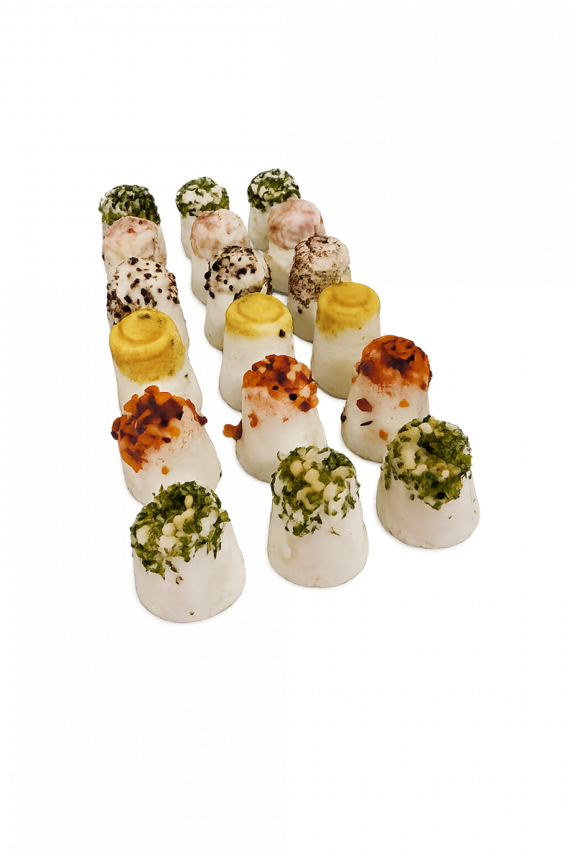 Petit fromages frais aromatisé pour apéritif, présenté dans une petite boîte de dégustation, 100 % lait de chèvre 18 unités.