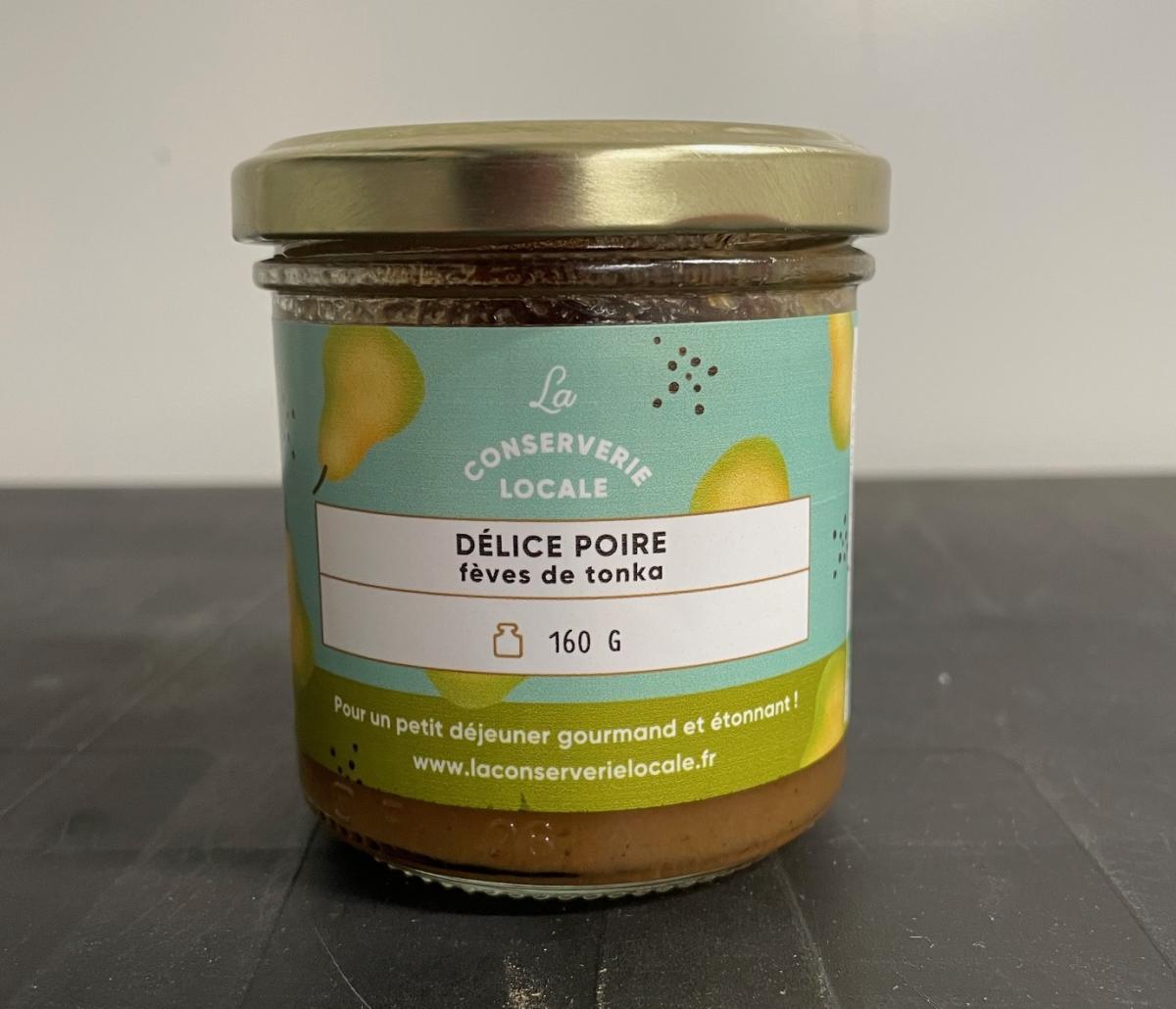 Ingrédients : poire (67.40%), sucre, jus de citron, fève de tonka (0.09%), cannelle.