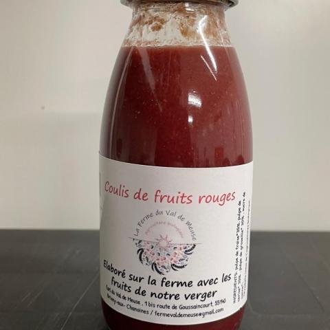 Ingrédients : pulpe de fraise 35%, pulpe de cerise 25%, pulpe de groseille 30%, sucre de cane