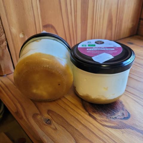 Ingrédients : lait de foin STG entier pasteurisé, crème épaisse, confiture de fruits (mirabio 55 ), présure, ferments lactiques