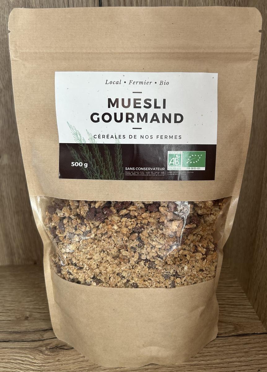 Ce muesli fermier est élaboré avec des céréales bios (avoine*, blé*, seigle* et petit épeautre*). Elles sont cuites avec du miel et de l'huile bio, pour apporter croustillant et plaisir sucré.