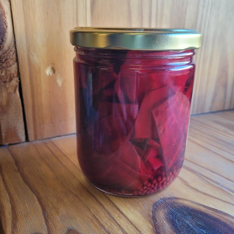 Fines tranches de betteraves rouges fermentées dans une marinade vinaigrée ces pickels agrémentrons à la perfection vos salades, burgers, apéritifs et viandes grillées.