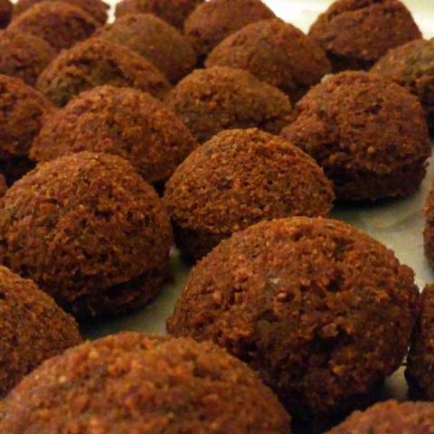 Ingrédients : Pois chiche de la ferme*, oignon*, persil*, menthe*, ail*, huile de tournesol*, sel, levure chimique*, semoule de blé*, graines de sésame*, cumin*, poivre*, zestes de citron*.