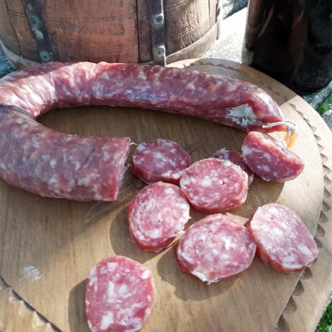 Nos animaux sont nourris à l'herbe. Nous sommes certifiés par ECOCERT, la fabrication du saucisson est contrôlée par ECOCERT également.