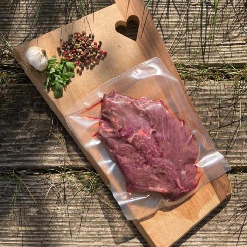 Bavette de boeuf, aloyau ou flanchet, race limousine, agriculture biologique, mise sous-vide.
