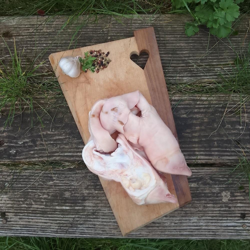pied de veau (tranché en deux = 2 morceaux), élevé sous la mère, agriculture biologique, mis sous-vide. Environ 750 grammes.