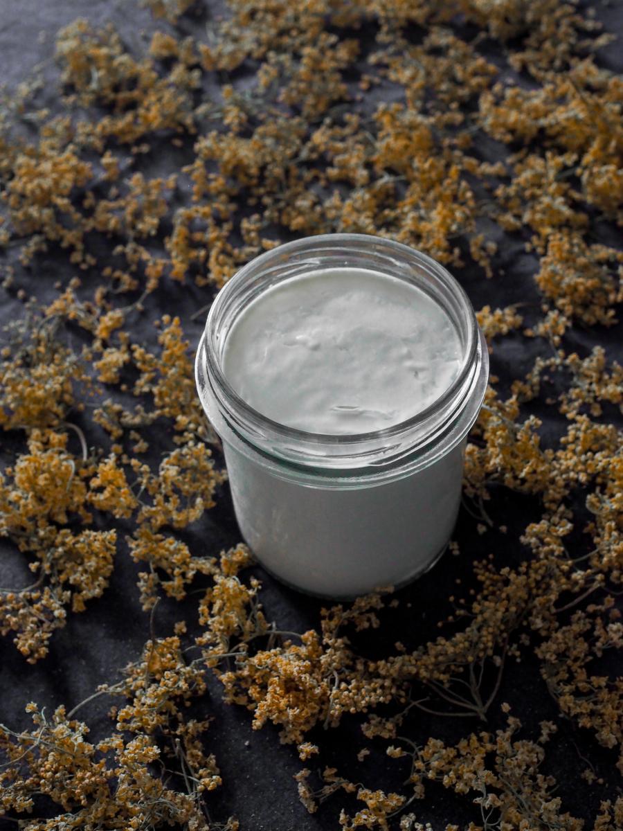 Le yaourt comme dans notre enfance. Yaourt ferme avec sa délicate couche de crème sur le dessus, subtilement sucré, dont le parfum est obtenu grâce à l'infusion de plantes.