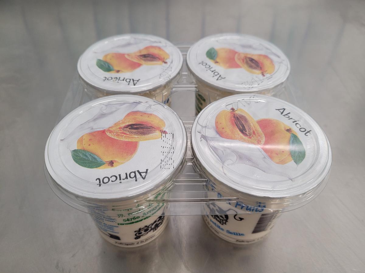 - Yaourts à l'Abricot bio au lait partiellement écrémé pasteurisé et confiture de Rhubarbe.