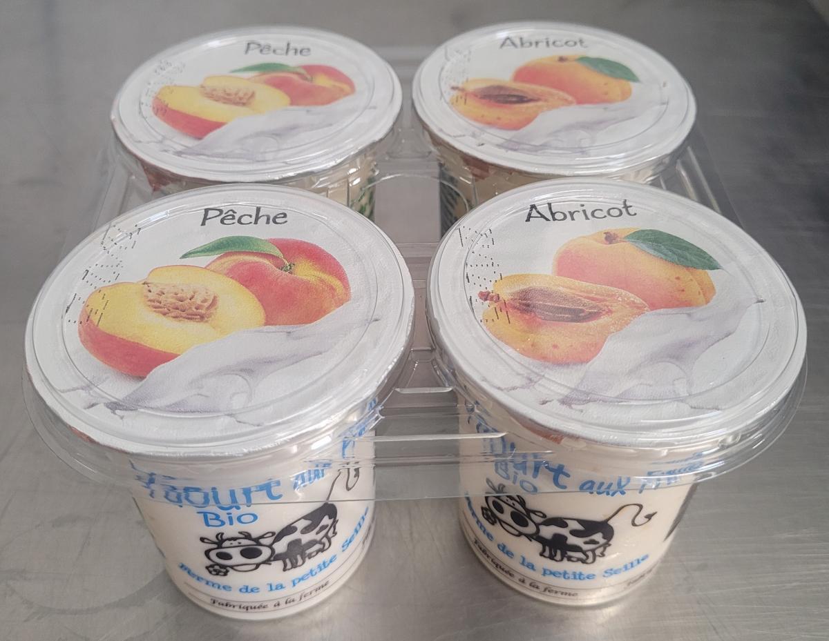 Yaourts aux Fruits Jaunes bio au lait partiellement écrémé pasteurisé et confitures (abricot, pêche, ananas ou orange).